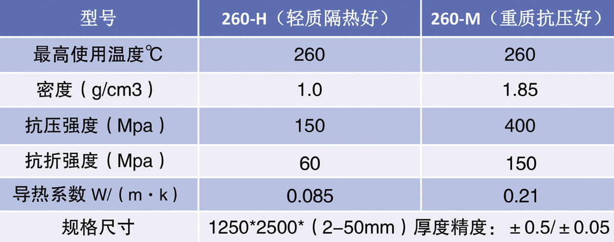 在耐熱性需要達到260℃以內(nèi)的條件下使用的工業(yè)設(shè)備隔熱材料;